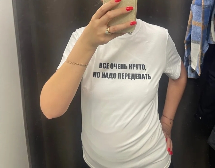 Футболка с надписью Всё очень круто, но надо переделать. Ссылка на неё
