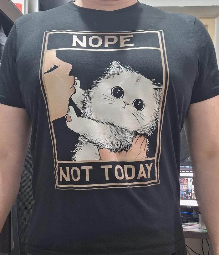 Уютная футболка с изображением котика и надписью Not today ("Не сегодня"). Кому интересно, ссылка на такую