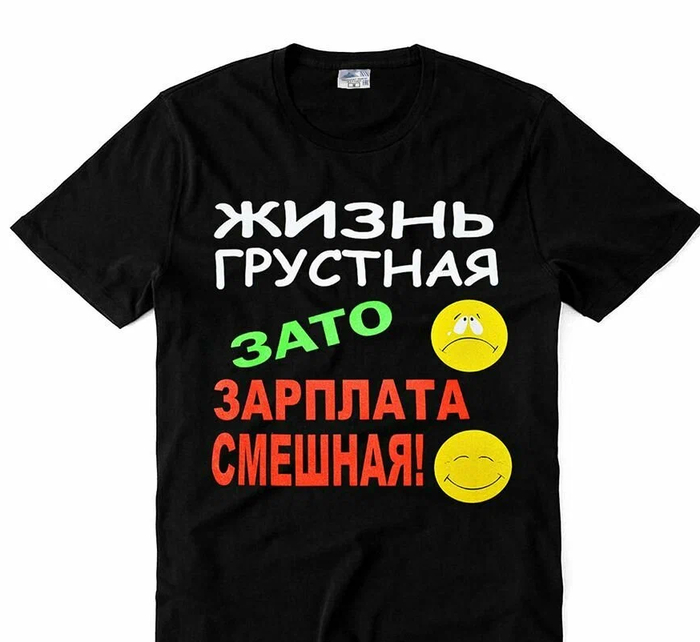 Забавная футболка Жизнь грустная, зато зарплата смешная. Ссылка на такую