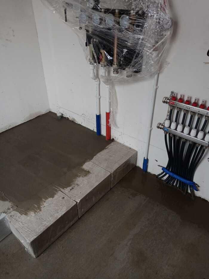 Так же утеплил дом снаружи плитами технониколя. Не так уж это и тяжело. Но потом снова наемные работники. Отопление, газ, стяжка пола - это уже не я. Да и со здоровьем опять опять не очень стало. Ранение иногда даёт знать о себе.