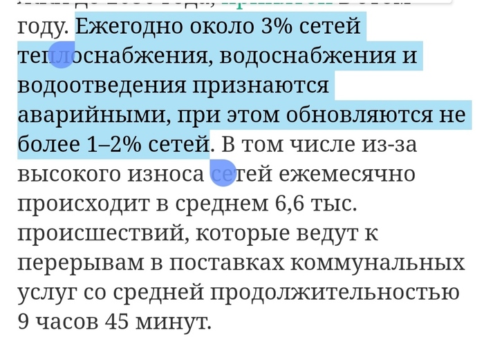 Очевидно, что таким темпом замена сетей займет до 100 лет, а значит никакая замена и вовсе не состоится. Да, там планируют какие-то фонды, миллиарды, обещают поднимать стоимость в год не больше чем на 10%, региональные "Терешковы" выдвигают предложения "по просьбам трудящихся", но даст ли это какой то результат, кроме поборов, пока что неизвестно. Спойлерить не будем.