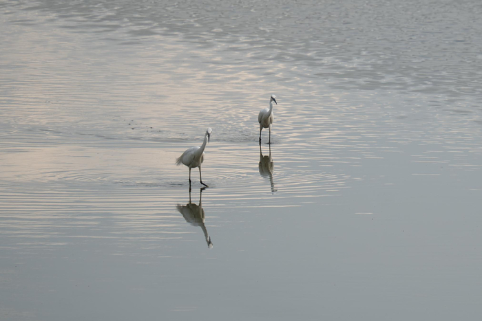 Белые цапли (Egretta garzetta, малая белая цапля) – это те стройные белые птицы с длинной шеей и чёрным клювом. На фото они стоят и ходят по мелководью, выискивая рыбу или насекомых.