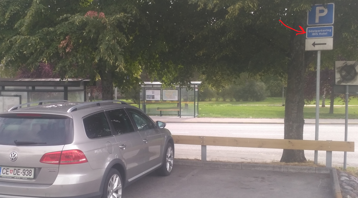 И когда я, возвращаясь домой, приехал в Стокгольм (Швеция), я просто припарковался около отеля IBIS на их собственной парковке (гугл карта). Не стал блокировать колесо "пищалкой" на диск, тем более, на улице ни души до горизонта. Просто слез и пошёл оформляться.