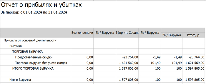 Итак, январь принес нам выручки почти 1,6 млн... Это меньше, чем в декабре, почти на двести тысяч.