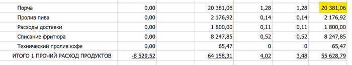 А если без шуток, то обеды для сотрудников, не считая каких-то доп. расходов, в себестоимости за месяц вышли в 17 тысяч рублей. Порча продуктов (сгорело мясо, где-то что-то уронили и тд) еще на 14,5 тысяч.