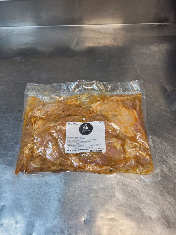 — К нам мясо поставляется с собственного производства в вакуумных пакетах по 3 или 2 килограмма. Это либо куриная грудка, порезанная кубиками, которая используется для приготовления обычной шавермы, либо целиковое бедро без костей, но с кожей.. В отличие от классических шаверменных, где используют вертел, мы можем готовить для тарелки более вкусное и сочное бедро: