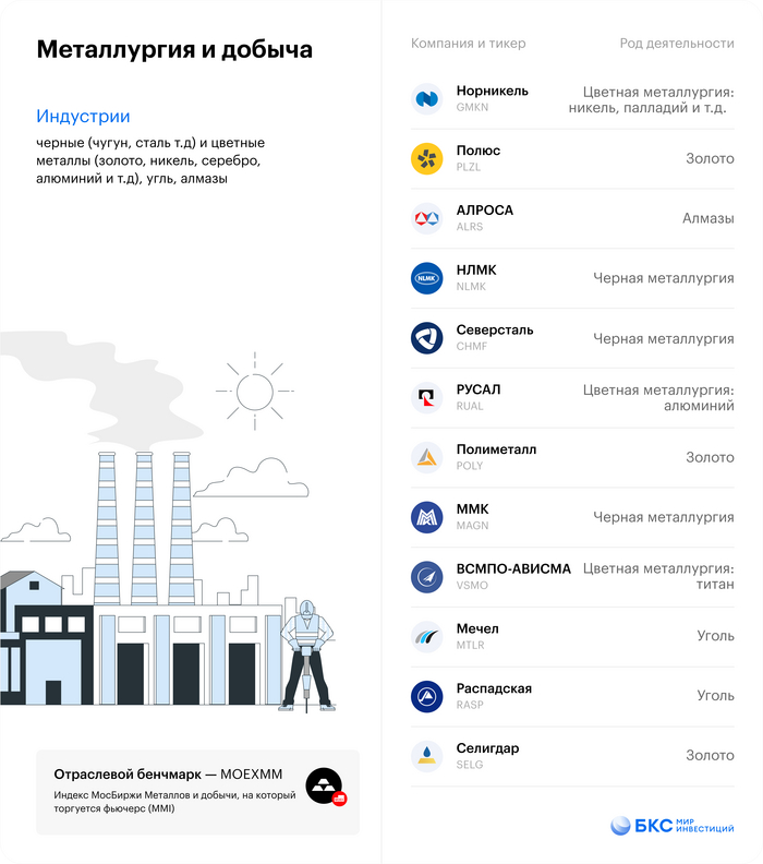 Один из самых насыщенных по количеству компаний секторов, занимающийся добычей и переработкой полезных ископаемых.