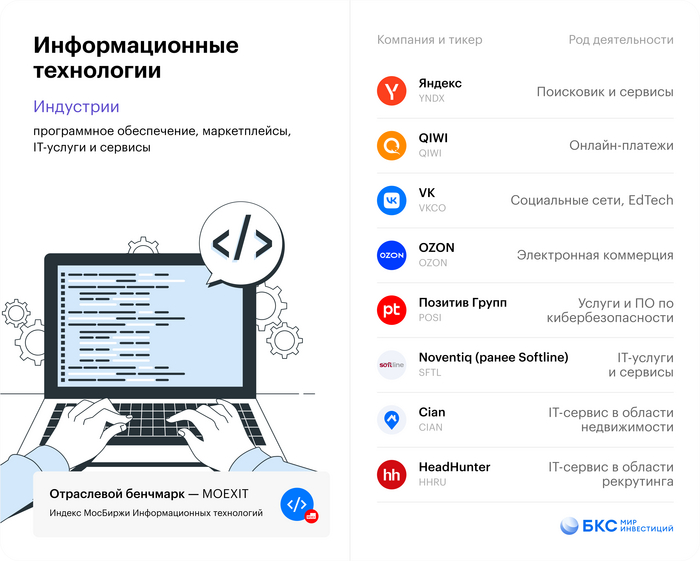 • Сектор в основном представлен «историями роста», то есть на первом плане динамика доходов, внедрение новых возможностей и масштабирование бизнеса, а не дивиденды.