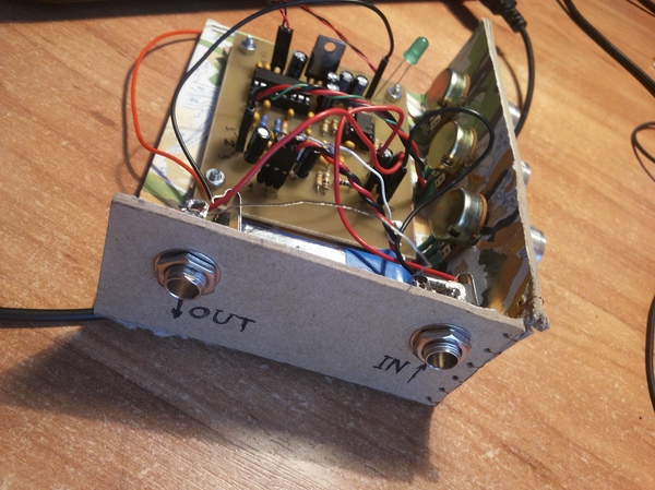 Эффект работает за счет линии цифровой задержки PT2399 и ОУ TL072. Кому будет интересно - выложу схему и статью, где эта схема детально расписывается.