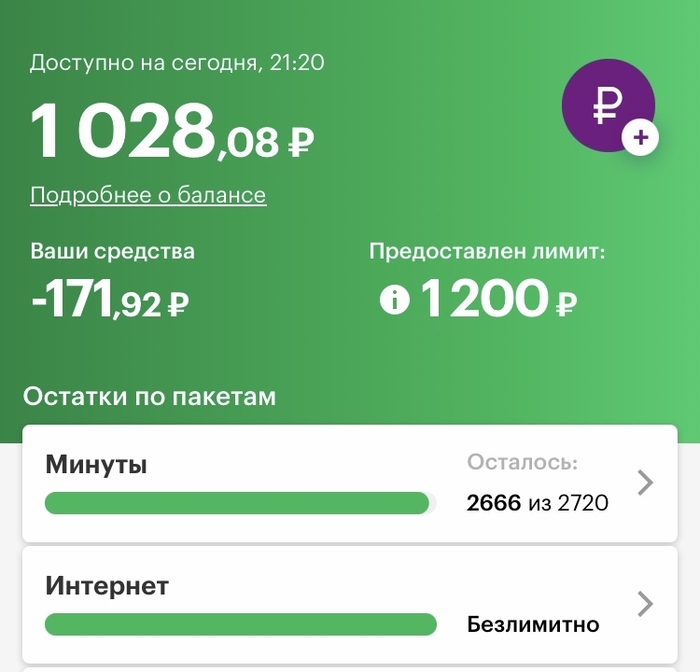 Подключили мне автоматически услугу «Будь на связи». Услуга бесплатная. Можно уходить в минус и потом пополнять баланс. Я никому не звоню, за полмесяца только 40 минут выговорила, смс не пишу, только пользуюсь интернетом. Раздаю, смотрю, и тд. Муж у меня в отделе продаж и снабжения, постоянные звонки, часто уходил за лимит минут - подключала дополнительные. Также он постоянно забывает пополнить баланс, по итогу берет доверительные несколько раз, комиссия за них набегала аж до двухсот рублей. Думаю, подключу ему такую же услугу, уже за комиссию по доверилкам не платить. Подключила. Поржала. Спасибо, Мегафон! Первый скрин из моего лк, второй мужа.