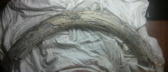 Тот бивень, что оказался у меня в руках, очевидно, относится к четвёртому сорту. Оказывается, у него была следующая предыстория: его нашли в шахте около десяти лет назад, передали молодому человеку, а он, в свою очередь, просто положил его под диван, так как не осознавал его ценности и не подозревал о мерах, предпринимаемых для сохранения бивней. Собственно, после извлечения из шахты, бивень выглядел вот так: