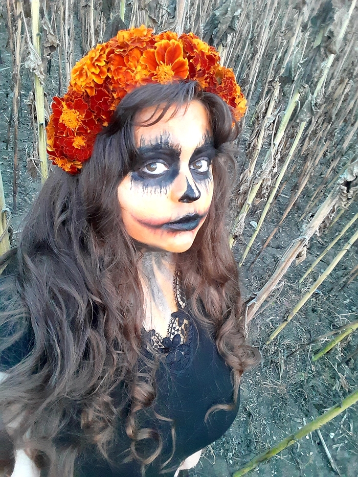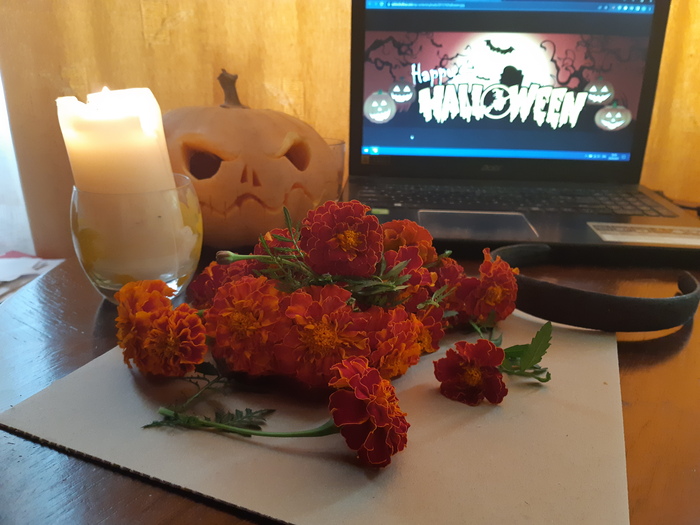 К образу Джека дамы нужен обязательно венок. Для этого я взяла бархатцы и древний ободок: