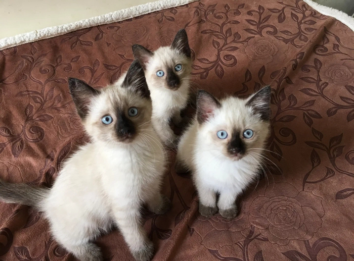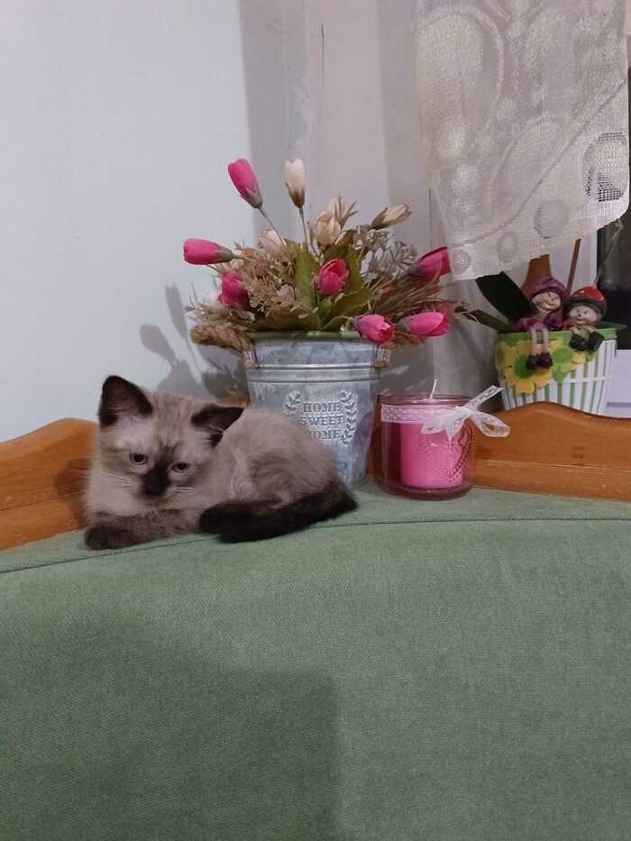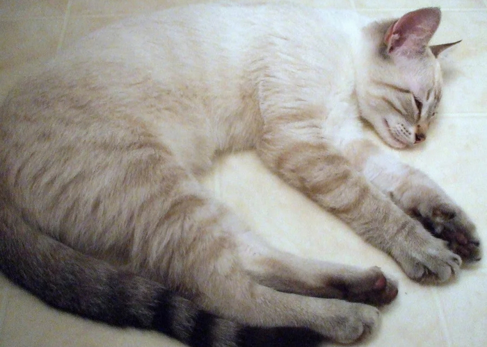 Беспородная кисонька Маруся. Родилась таким же бледно-бежевым однотонным кокенком. Но что-то пошло иначе, чем у Касандры. Окрас очень похож на тайскую породу.