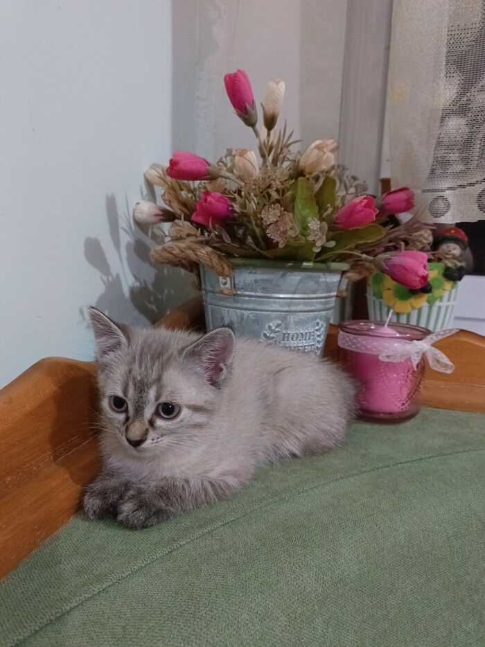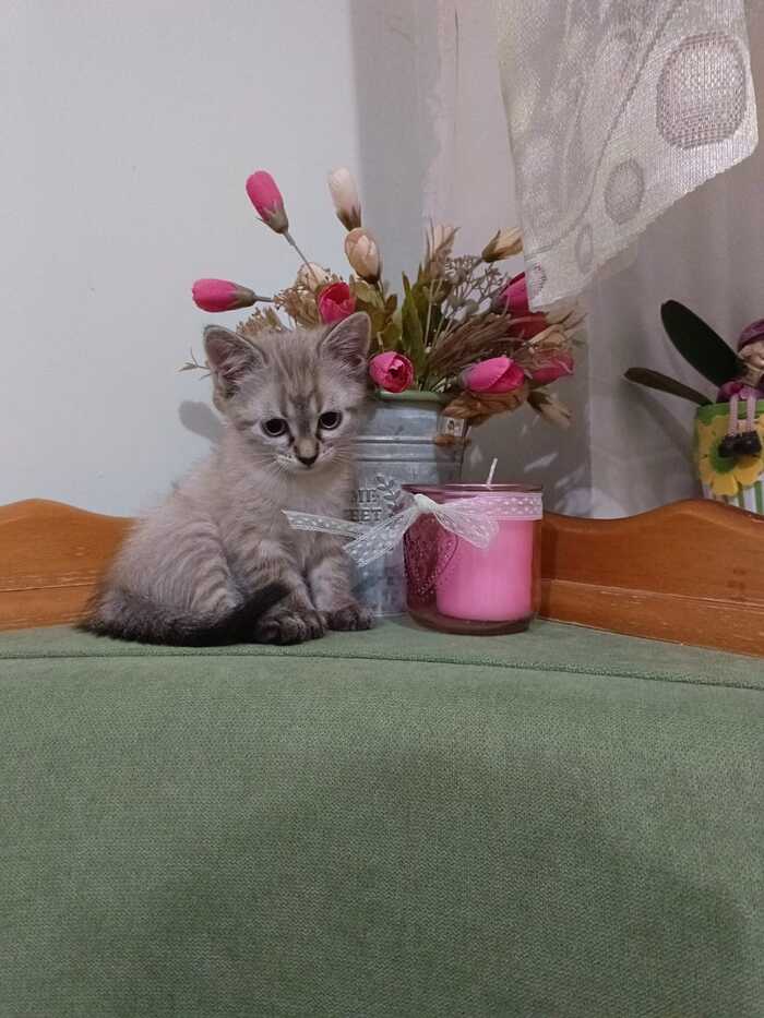 Также в прошлом помете у этой же беспородной кошки были серые/голубые/дымчатые котята. Больно напоминающие нибелунгов. Сохранилась только такая неудачная фотка с одним из них. Котик Шарлотик. Увы не передает тот самый голубой окрас.