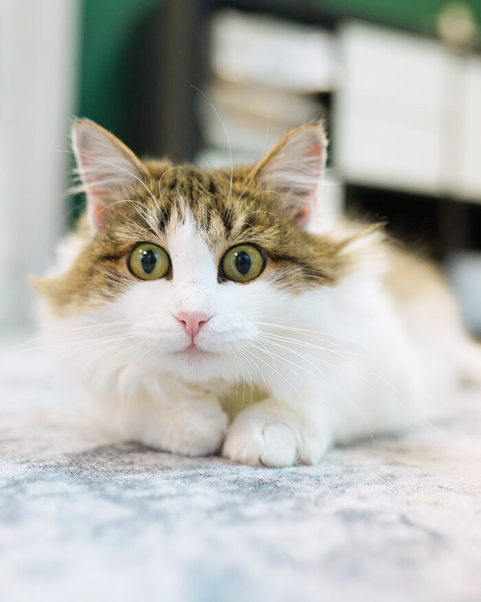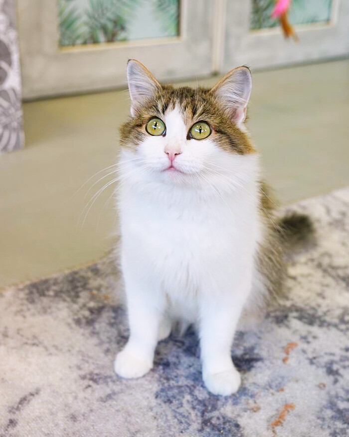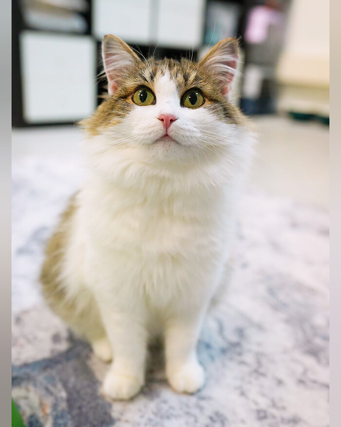 Изи появилась в котодоме последней и котики совсем её не приняли. Малышка по 20 часов сидит на шкафу и невыносимо осознавать, что выхода в этой ситуации нет. Она спускается, только когда я прихожу кормить и убираться, потому что страшно, что другие котики обижают её, милая девочка... 😔