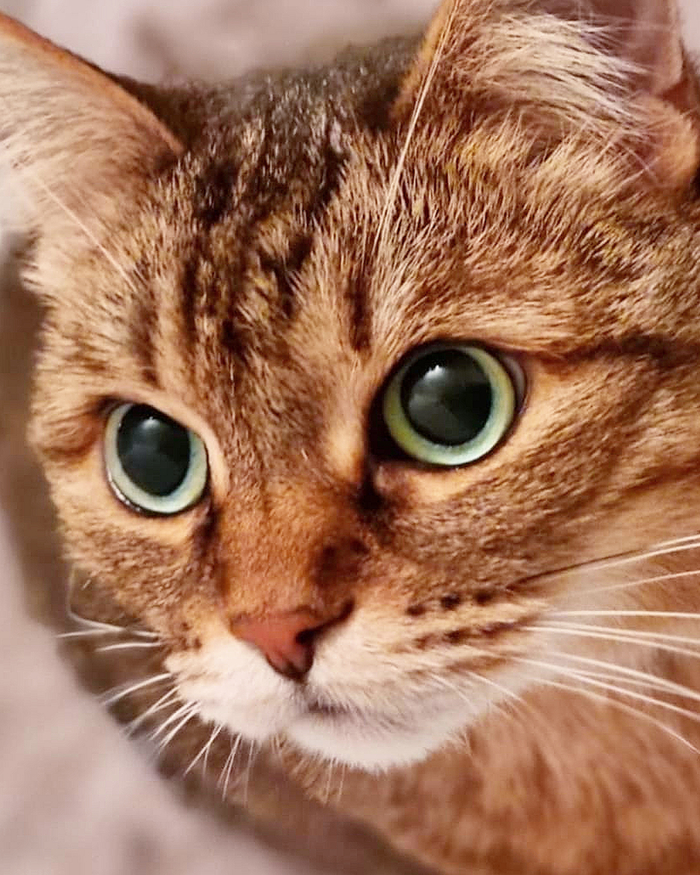 Красивая девочка с шикарными ярко изумрудными глазками. Изи мегаласковая, ручная, невозможно мурчлявая котодевочка, она просто обожает человека, всем сердцем тянется обниматься и целоваться. Но к сожалению это грустная история...