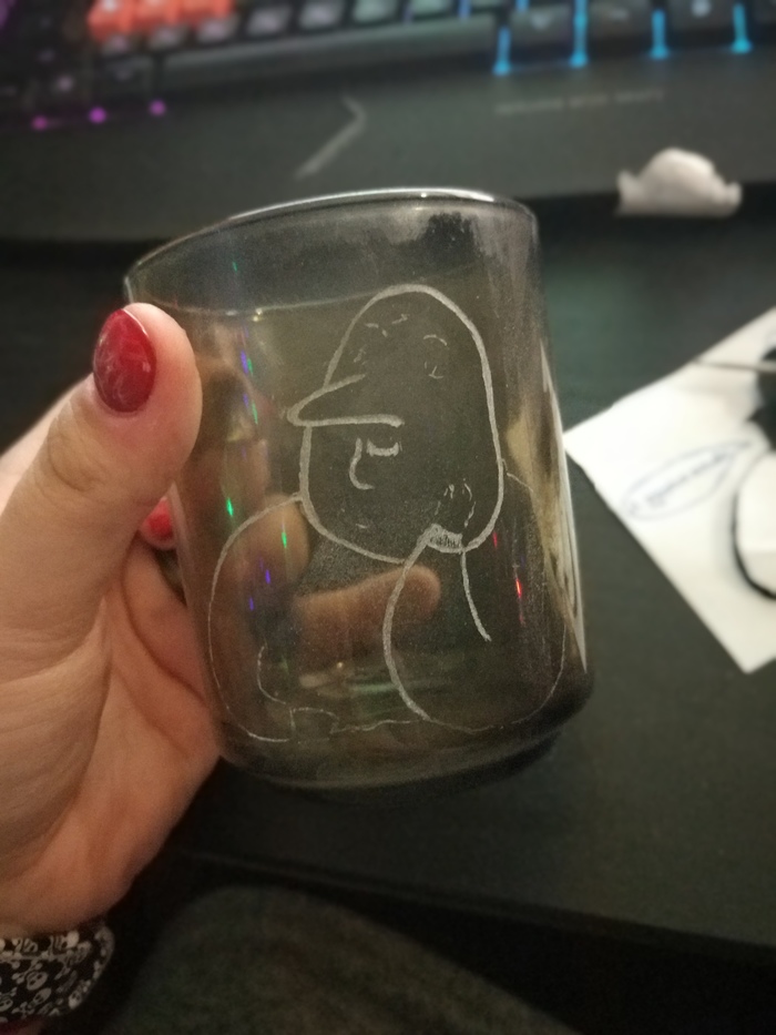 Я делаю маникюр и у меня есть машинка для аппаратного маникюра, а это по сути то же самое что и бормашинка. Решила, раз есть возможность, да и к тому же люблю что то делать своими руками, попробовать самой что то выгравировать на стакане. Решила взять фрагмент из этой картинки
