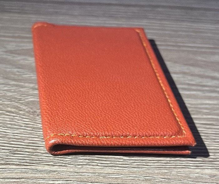 Вживую цвет не такой рыжий, как на фото. На первых четырех фото книга кажется значительно меньше первоначальной, на самом деле на 14мм меньше в высоту и чуть меньше в толщину за счет отсутствия изогнутости корпуса.