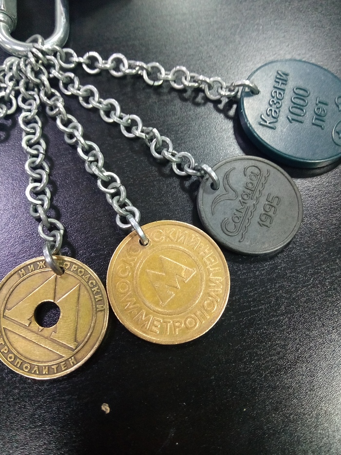 Продолжу... Моя работа связана с частыми командировками по стране. И решил я собрать брелок региональщика, состоящий из жетонов метрополитена из наших городов где он есть. Ну и вот: