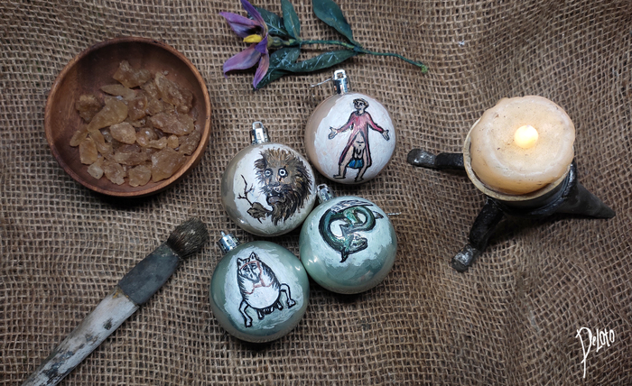 Ёлочные шары с Гарри Дюбуа, Кимом Кицураги и Долорес Деи по Disco Elysium. Диаметр шара 8 см.