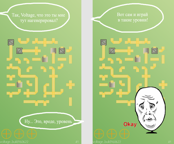 Каждый разработчик, как бы ни были велики его амбиции, рано или поздно понимает, что, ворвавшись в мир геймдева, создать ААА-тайтл с нуля не выйдет, и начинает обращать внимание на более простые задачи, желая получить с них опыт разработки на том или ином программном обеспечении и обрести в случае удачи какую-никакую, но известность. Так получилось и со мной: выбрав Unity3D в качестве своего основного объекта интереса и побившись над настройкой физики и 3D-графики, я отложил 3D-часть движка ненадолго в сторону и обратил своё внимание на то, что ныне очень популярно - несложные, но одновременно неординарные и заставляющие подумать 2D-головоломки под Android. так родилась идея игры Voltage - смеси tube-игр, так любимых мною в детстве, и принципов электроники.