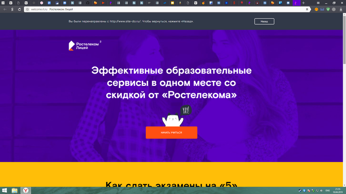 Ростелеком решил последовать по пути мегафона, но более наглым образом. Вместо того, чтобы вставлять рекламу в страницу, он банально перенаправляет вас на свой проект.