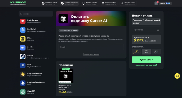3 место — Oplatym: удобный способ купить Спотифай Премиум и другие подписки