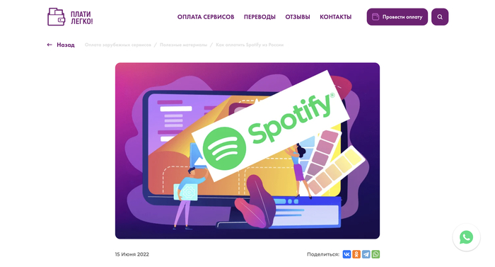 1 место — InOplata: самый удобный способ оформить Spotify Premium
