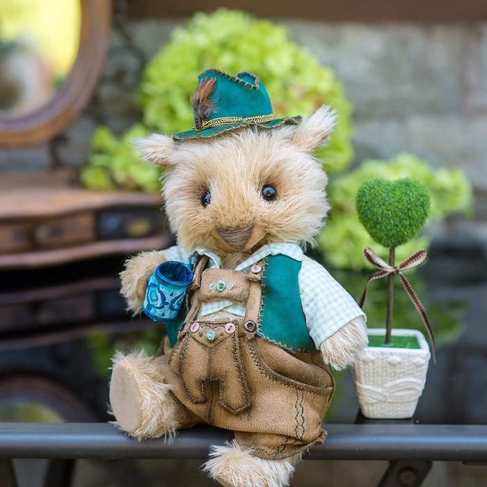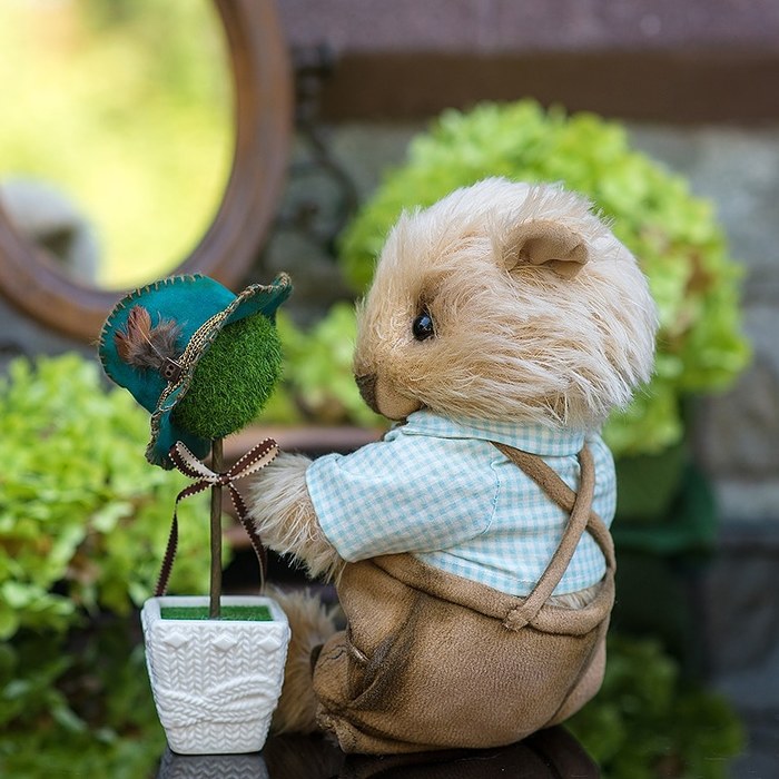 Впервые для себя сделала игрушку на пластиковом скелете. До этого использовала только классические крепления для мишек-тедди (шплинты и диски). Эта технология классная, нравится возможность придания различных позиций. Получилось весьма забавно, обязательно буду экспериментировать дальше