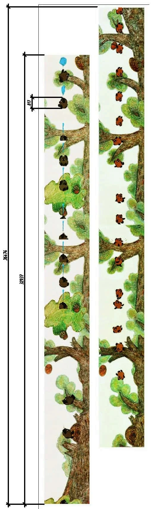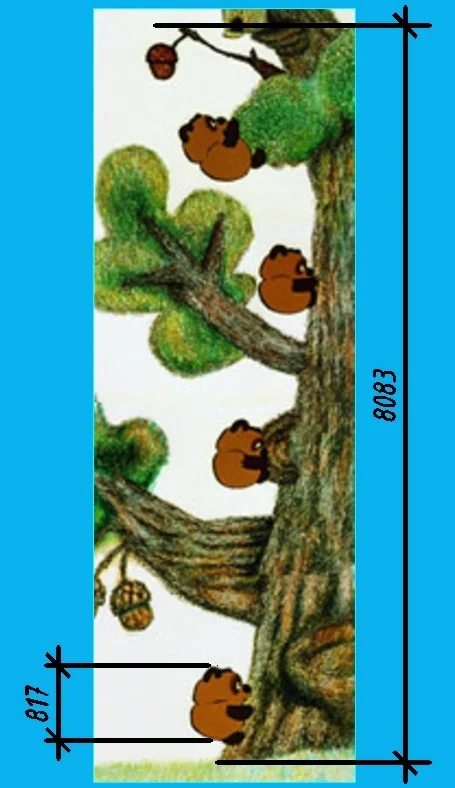 - Пятачок находился на земле от ствола дерева на 2120 мм, то есть он был дальше от дуба чем Винни на 600мм.