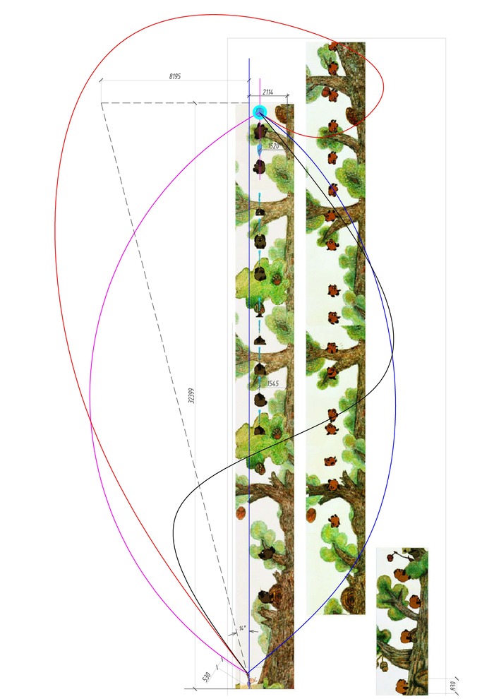 То есть получается если бы Пятачок стрелял из гранатомёта/мортиры/пробкового ружья по баллистической траектории то минимальное отклонение на высоте зависания Винни было бы 8195мм - 8,195м, это чёрная линия. В общем он бы не попал в опилковую задницу никак бы исходя из логики и геометрии.