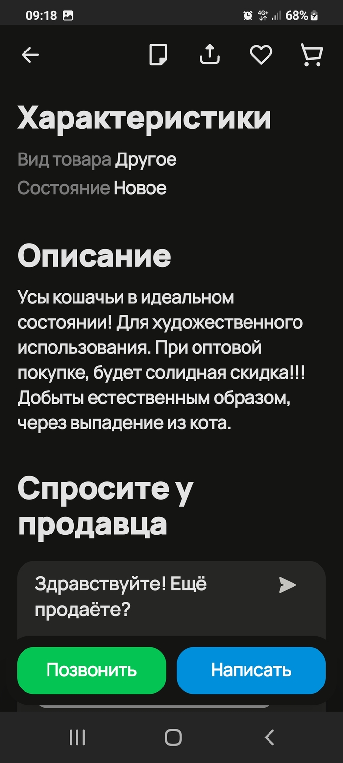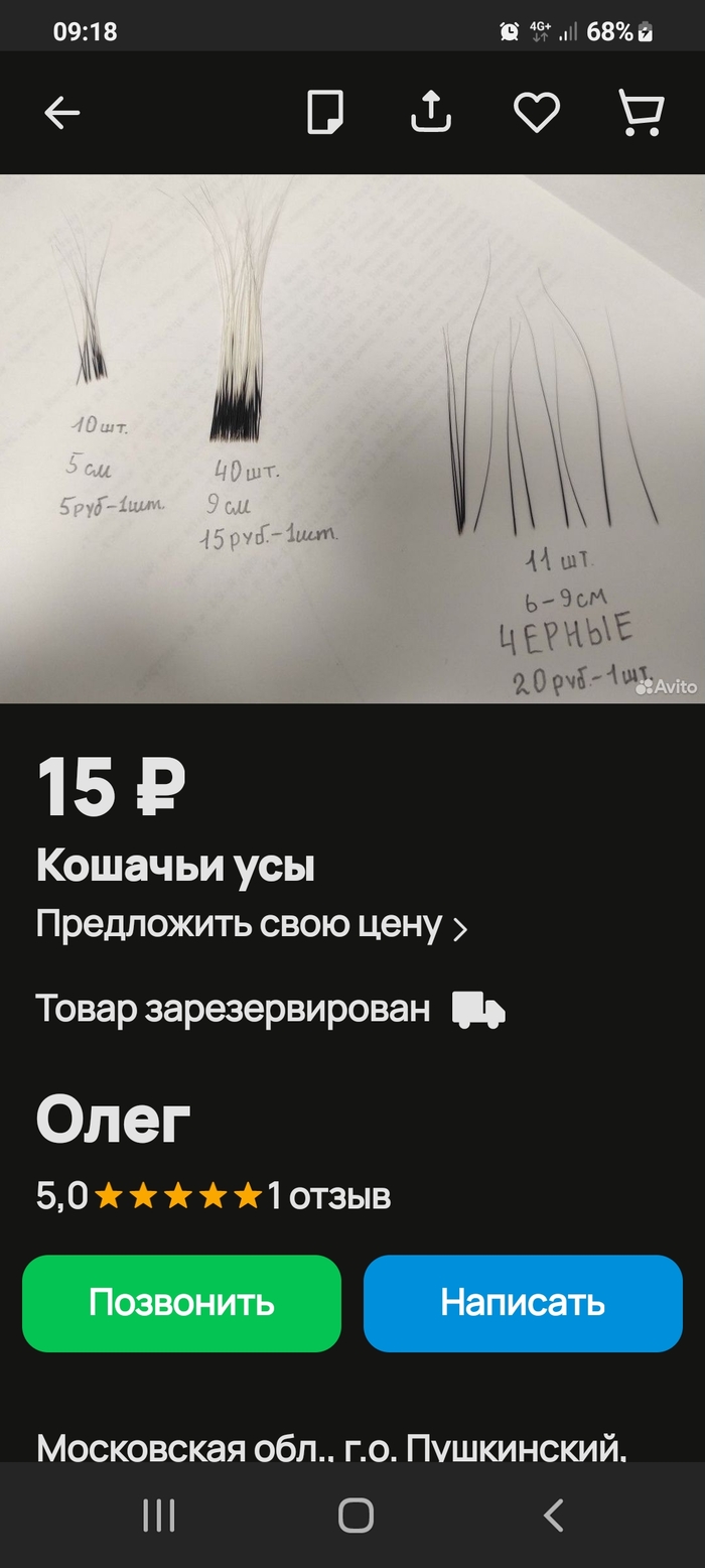 8 Green82 Олег, продавец усов 1 год назад Показать полностью 2 Скриншот Авито Кот Усы Длиннопост Объявление 2 Ещё 0