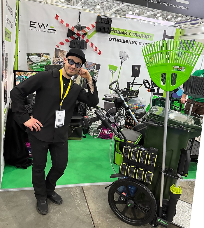 В начале ноября со мной связались ребята из Краснодара. У них фирма, и они изобретают инвентарь для уличной уборки. Их босс, Виталий, подарил мне их тележку, а потом позвал в столицу на выставку Clean Expo.
