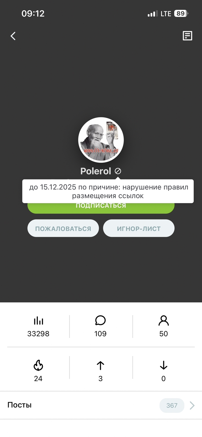 Уважаемые @admin, @moderator, а это нормально, что человек в БАНе, но посты пилит?