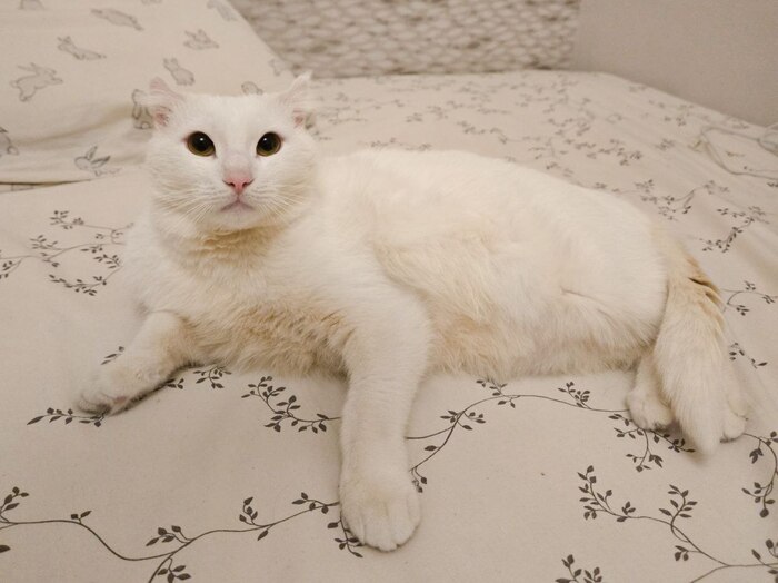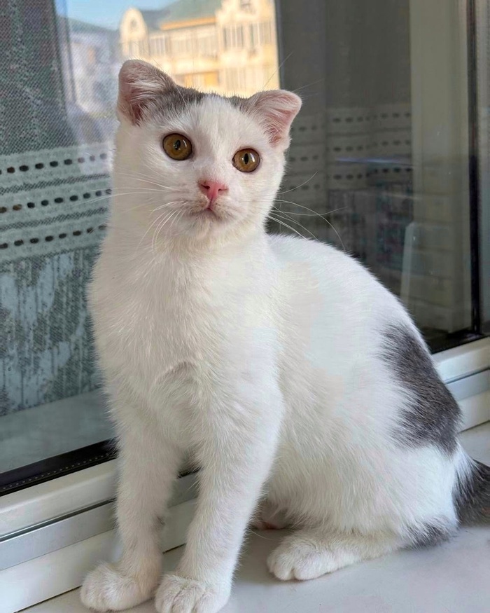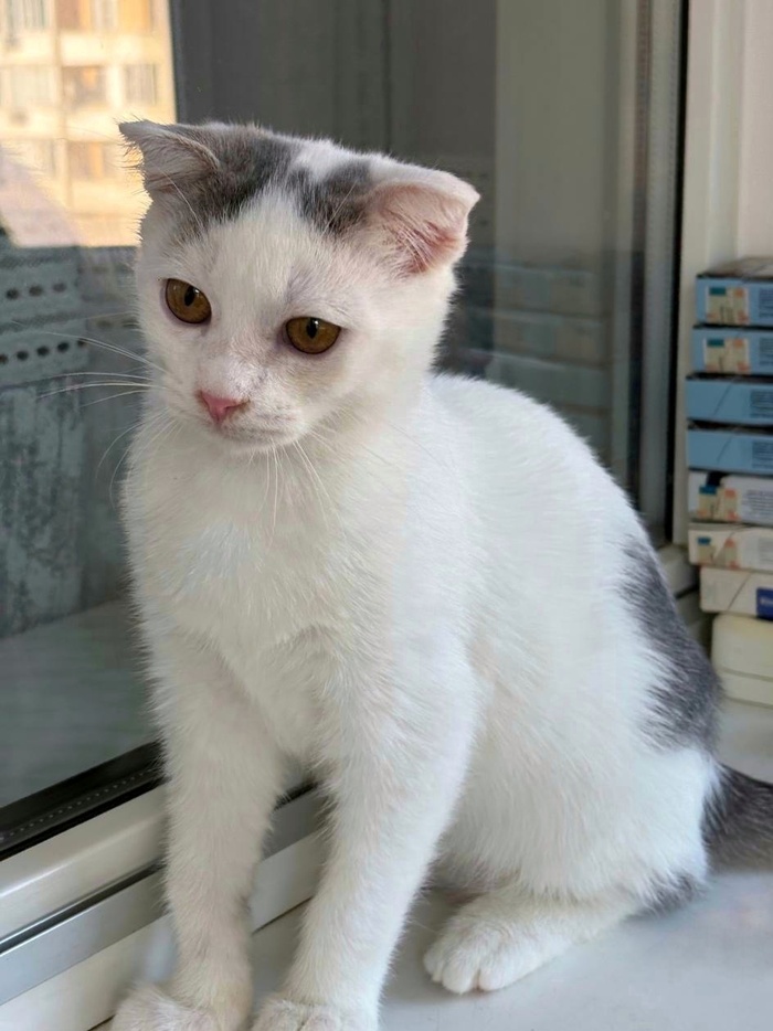 Белая с пятнышками малышка ждет своих котородителей! Забирайте скорее красоту!