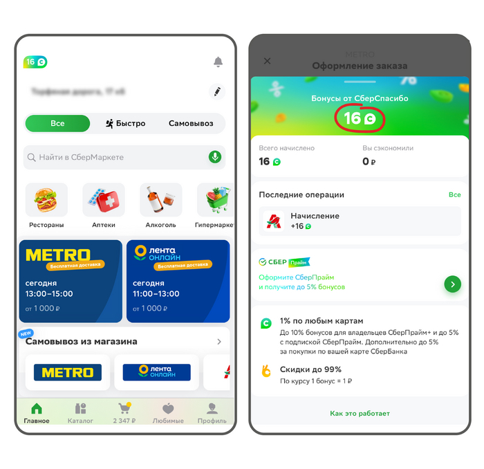 Ещё выгоднее с подписками СберПрайм или СберПрайм+. У меня подключена последняя, там возвращается до 10%. Допустим, если сделать заказ на 2 000 ₽, то тогда начислится до 200 бонусов.