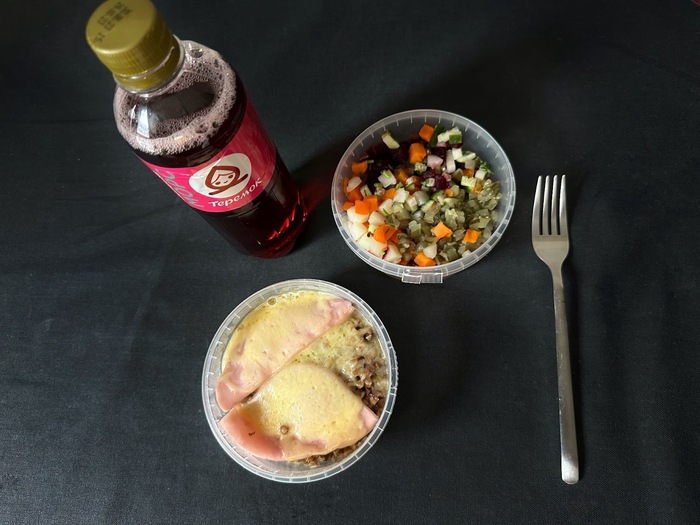 На обед выбрал борщ и фермерский блин, а на ужин — винегрет, гречку с ветчиной и сыром, морс. Доставка бесплатная и быстрая, даже не хочу думать о том, что сам бы всё это готовил и потом мыл посуду.