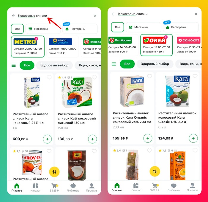 Ситуация: захотелось чем-то порадовать себя любимую. Вы как обычно закупаетесь продуктами в METRO внутри СберМаркета и внезапно захотели роллы. Ну или новую помаду. Для этого не придется идти в отдельные приложения ресторанов или на сайты косметики. Просто загляните в соседние каталоги «Подружки», магазина «Магнит Косметик» и карточки ближайших кафе. То есть всё можно оформить в одном месте.