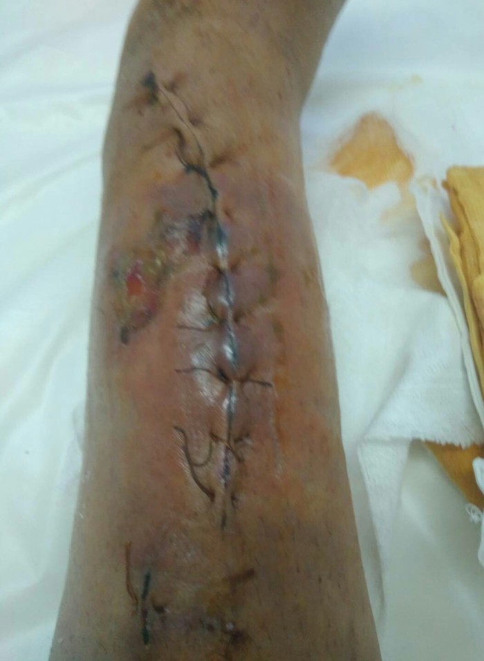 Проснулся опять в палате. Нога забинтована и на бинтах большое кровавое пятно. Потом даже пришлось подматывать повязку. Как выяснилось БИОС сделать мне не удалось и установили мостовидную пластину. Шов был большой, около 15 см. К вечеру опять начались боли. Даже ночью приходилось вызывать медсестру с обезболивающим. К отечности ноги прибавилась гематома в районе послеоперационного шва. На перевязке врачи мне ее впускали зондом (типа проволочки, засовывали ее под швы и шурудили там, очень больно), но она всё равно сохранялась. Опять ежедневные перевязки. Я уже могу спать на любом боку, что порадовало.