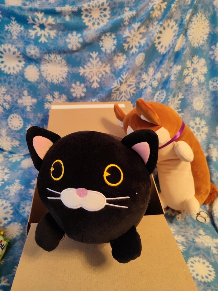 После вскрытия Котя занимает коробочку, как раз его размер. Дедушка Мороз и Снегурочка как будто снимали мерку.