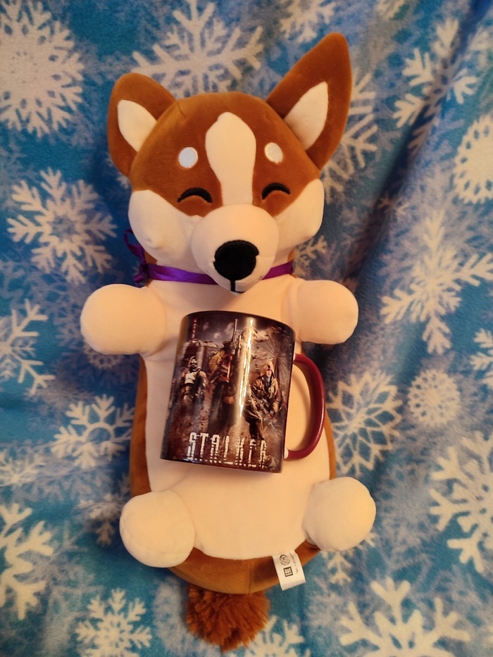 Но это не всё. Что же такое прячется под слоем пупырки? Кружка по теме любимой игры. "Вот такая она большая" - говорит Корги, показывая лапками размеры подаренной ёмкости.