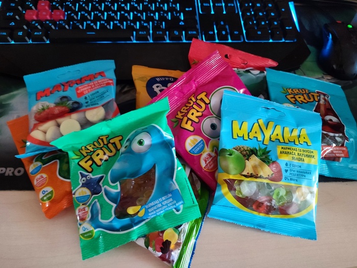 Поскольку Коте уже ничего не нужно, то малышу Корги приходится самому потрошить посылочку. И что же внутри? Вкусняшки. Очень много вкусняшек. Целый вагончик радости и счастья, аж лапки не держат от такого восторга.