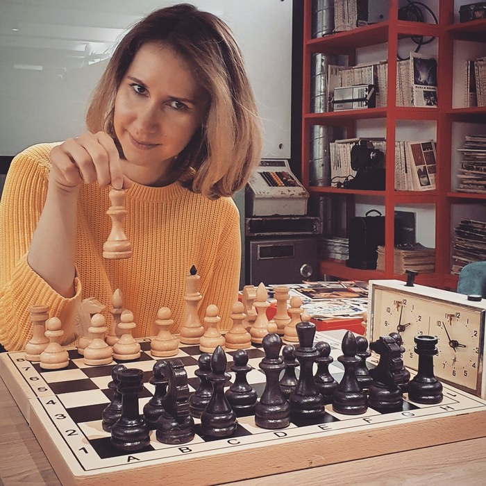 Доска повёрнута неправильно, ферзь с королём перепутаны местами, пешка отсутствует, слон куда-то убежал, про часы молчу... А ходит она закрытым ферзём.