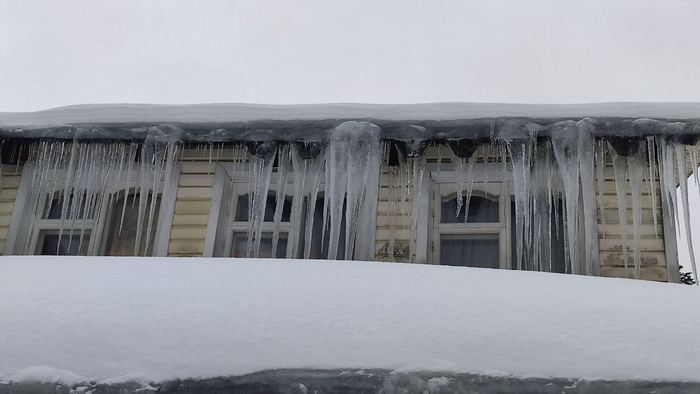 Ну и до кучи льдины с основной крыши, падая на крышу крыльца, пробили последнюю, из-за чего она стала протекать: