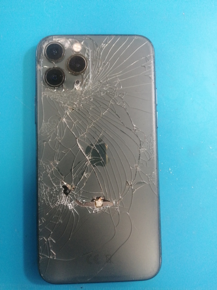 Работаю в сервисе по ремонту телефонов и вот решил поделиться результатом своих трудов. Приехал к нам разбитый iphone 11 pro из далекой(на самом деле не очень) Финляндии. Вот такой. Разбит дисплей, задняя крышка, погнут корпус немного, плюс повреждена фронтальная камера.