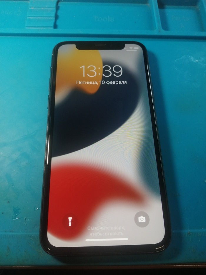 Далее дело не хитрое, выравниваем корпус, вклеиваем новое стекло, ложим под пресс и ждем, пока крышка плотно склеится, собираем телефон, восстанавливаем на программаторе функцию truetone, переписав ее с родного дисплея. Меняем фронтальную камеру, устанавливаем новый дисплей и телефон готов.