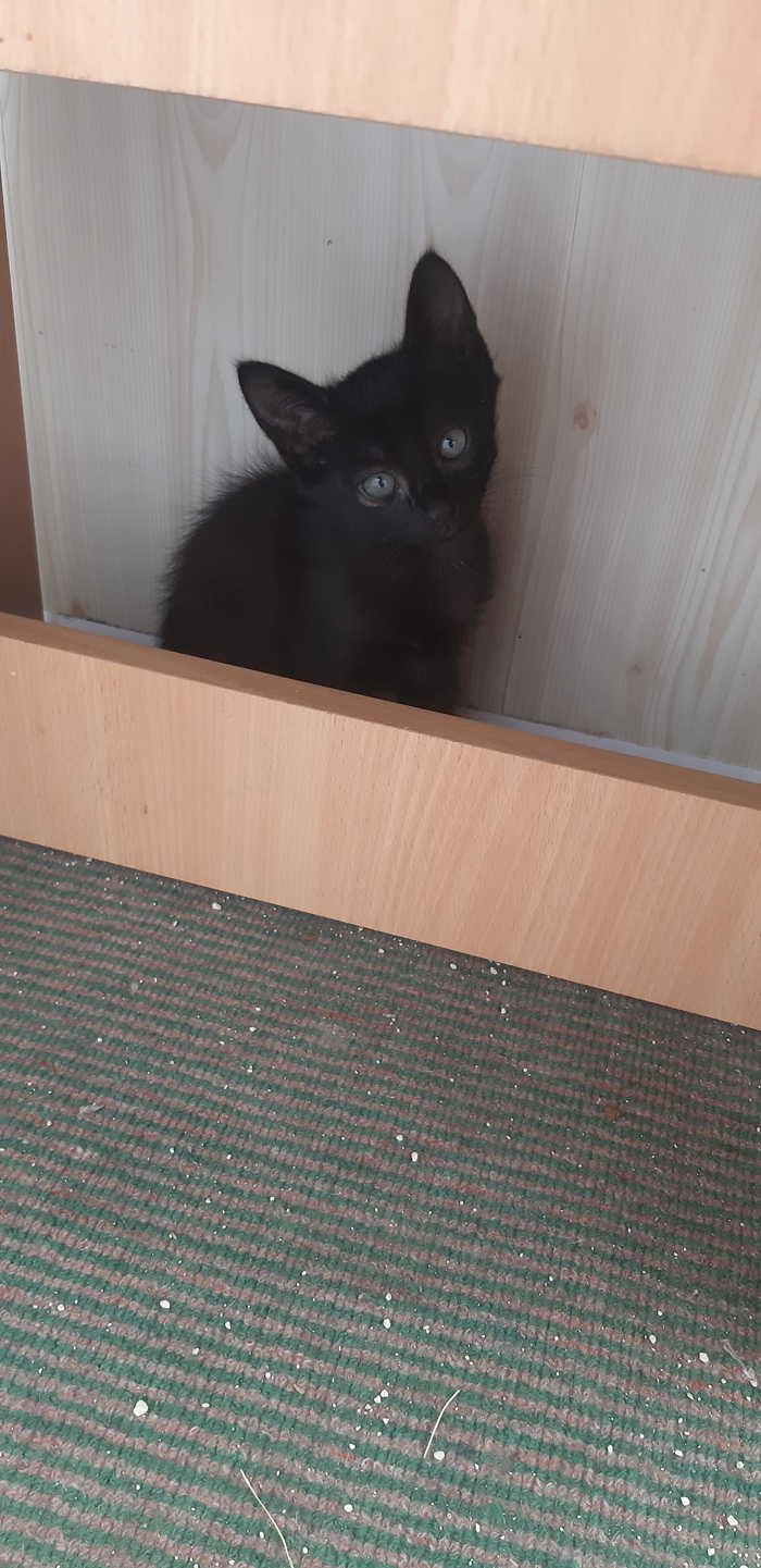 Некоторое время назад я подобрала с улицы котенка. Чернявый, ушастый и совершенно дикий. Сейчас мелочь уже не шипит и не отмахивается всеми лапами, но все равно опасается человека. При этом он очень любит других котов, тянется, мурлычет. Ищу ему хорошую семью. Котик здоров по заключению врача, проглистогонен и обработан от блох.