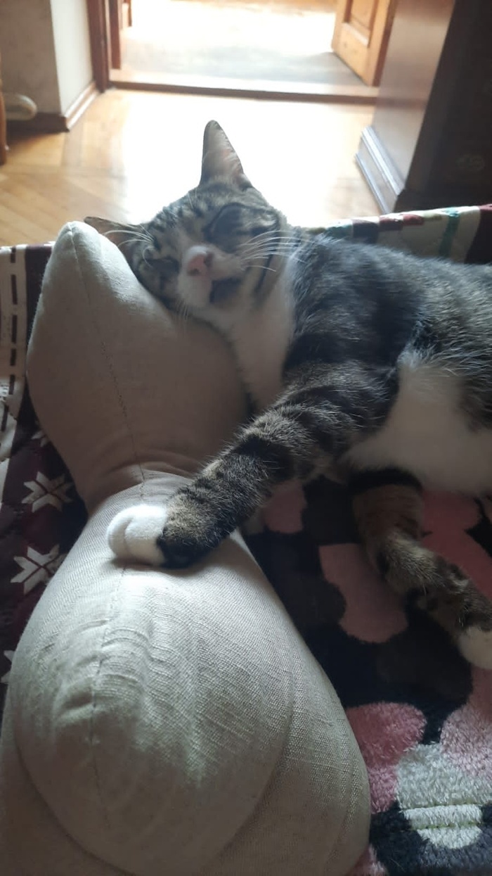Теперь же это здоровый, счастливый, любимый кот под бочком у своей хозяйки. :-)