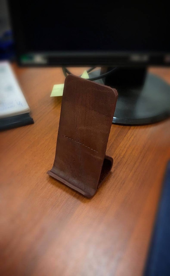 Подставка для телефона из обрезков от подошвенный кожи. Просто руки чесались что-нибудь сделать.