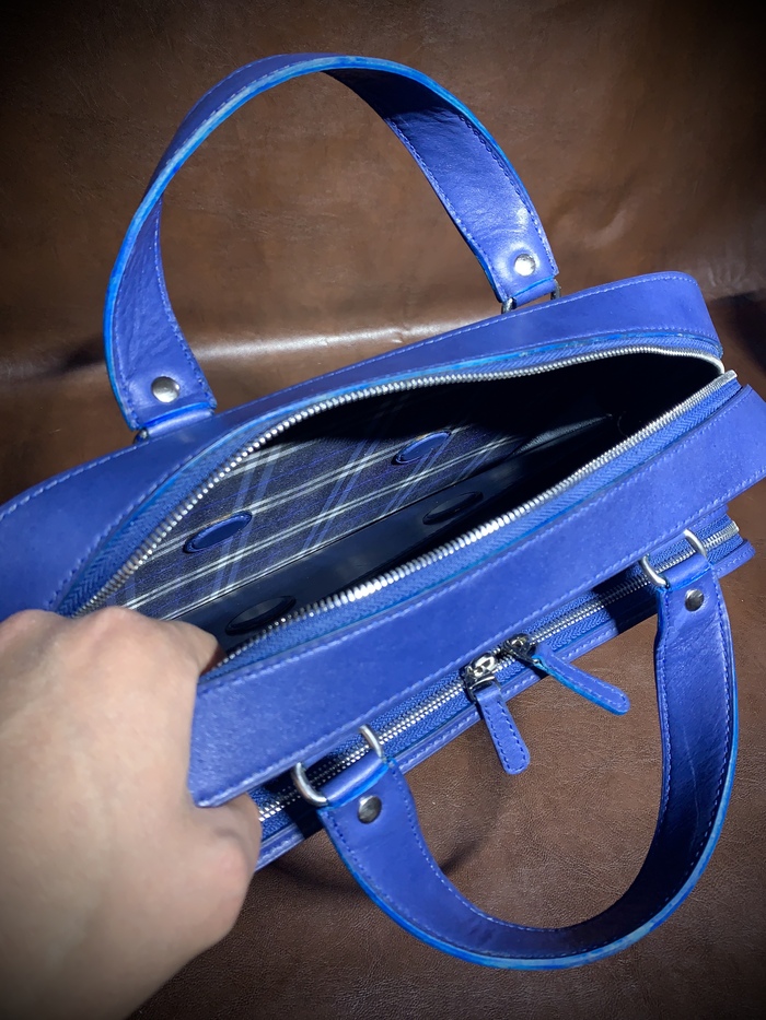 Кожа 2.2мм хромового дубления, покрывного крашения с заводским финишем, сумка без подклада, так что внутри дополнительно обработано Vlohto lippe, для защиты от влаги.
